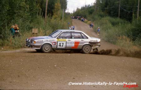 Stig Blomqwist à lors de cette épreuve, fait une remarquable préstation, puisqu'il fini 2éme avec 47s de retard seulement sur la "vraie" groupe B de Hannu Mikkola, et plus de 3 minute d'avance sur la quattro de Lasse Lampi (sur la neige la puissance n'est pas forcement un énorme avantage), cela lui vaudra de passer pilote "officiel" Audi et de finir l'année d'aprés champion du monde. ;)